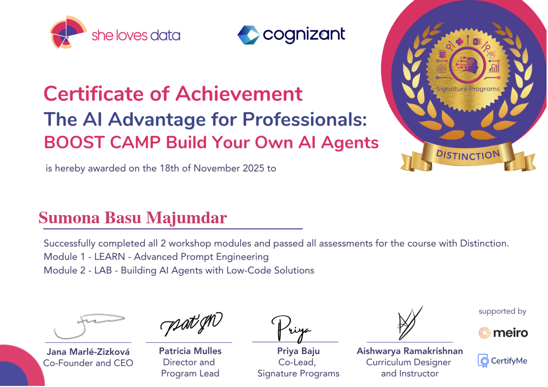 The AI Advantage for Professionals Boost Camp for Building AI Agents - Achievement with Distinction
