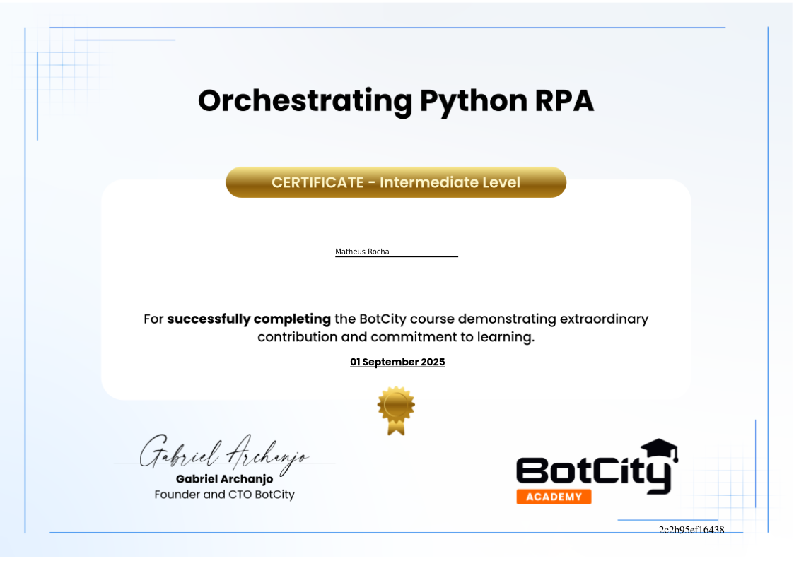 This practical course guided you clearly and objectively through the main functionalities of the BotCity Orchestrator, in addition to showing the benefits and advantages of using each feature in your automation processes.