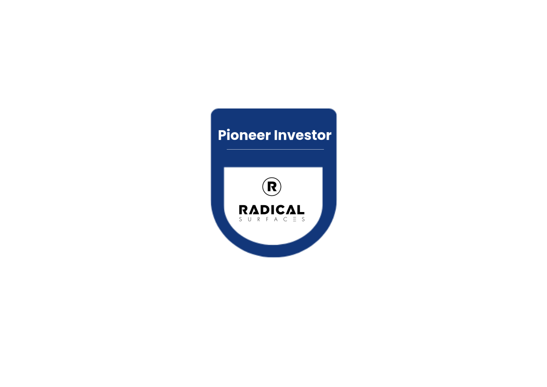 This badge recognizes early investors who backed Radical Surfaces during its formative stage. Pioneer Investors play a key role in supporting the development of next-generation manufacturing and material innovation in the United States.