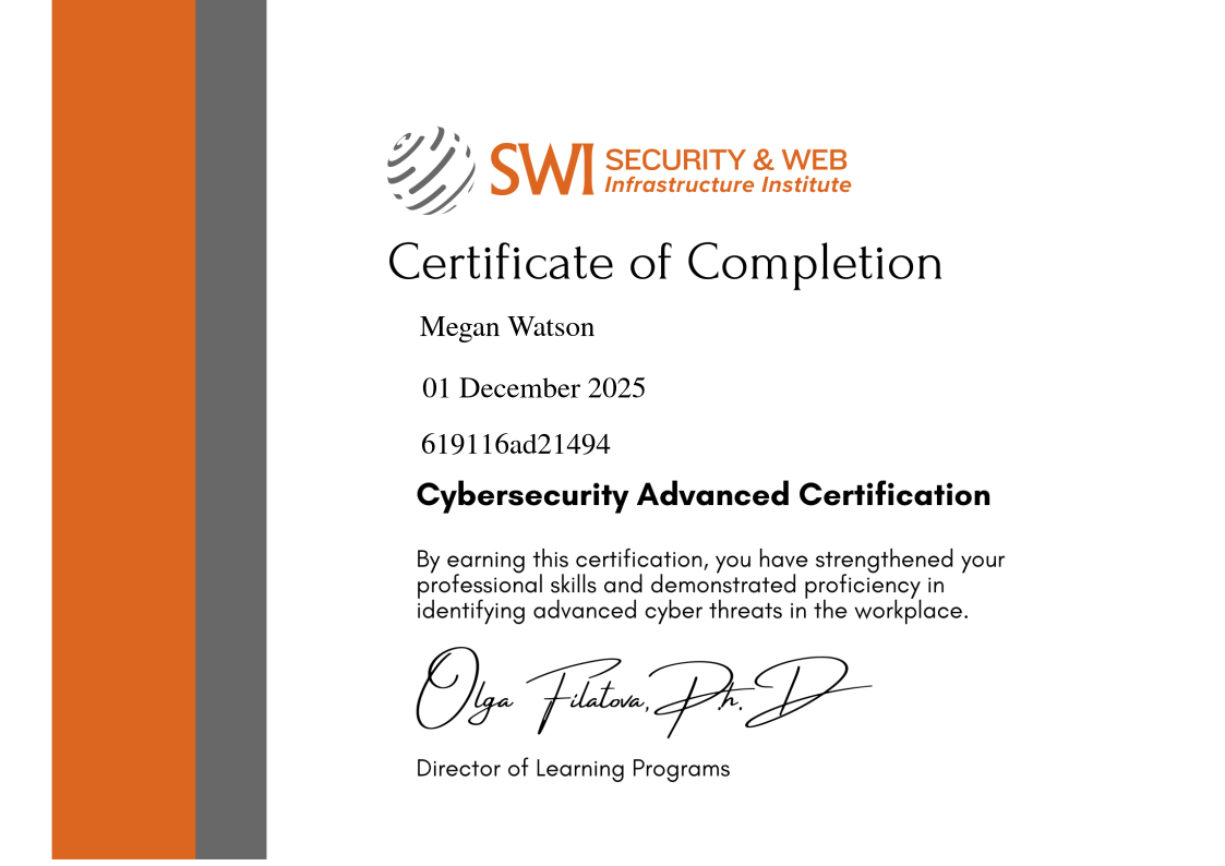 By completing this certificaiton, the participant has shown a strong understanding about advanced cybersecurity concepts, including network security, OS security, and artificial intelligence.
