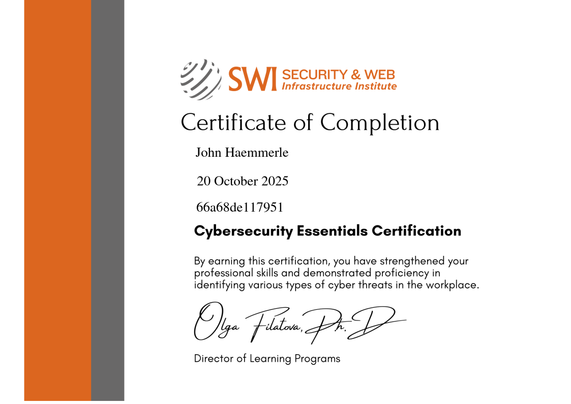 By completing this certificaiton, the participant has shown a strong understanding about the various types of cyber threats, defense mechanisms, and the best practices for protecting information and systems.