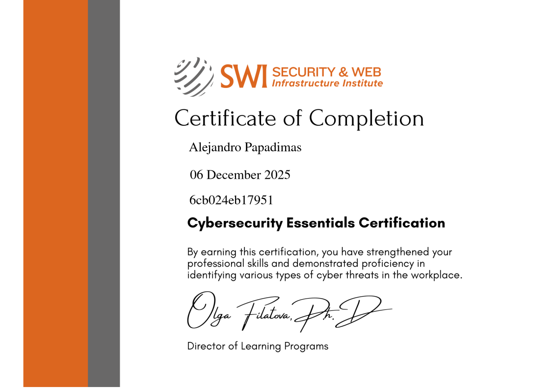 By completing this certificaiton, the participant has shown a strong understanding about the various types of cyber threats, defense mechanisms, and the best practices for protecting information and systems.