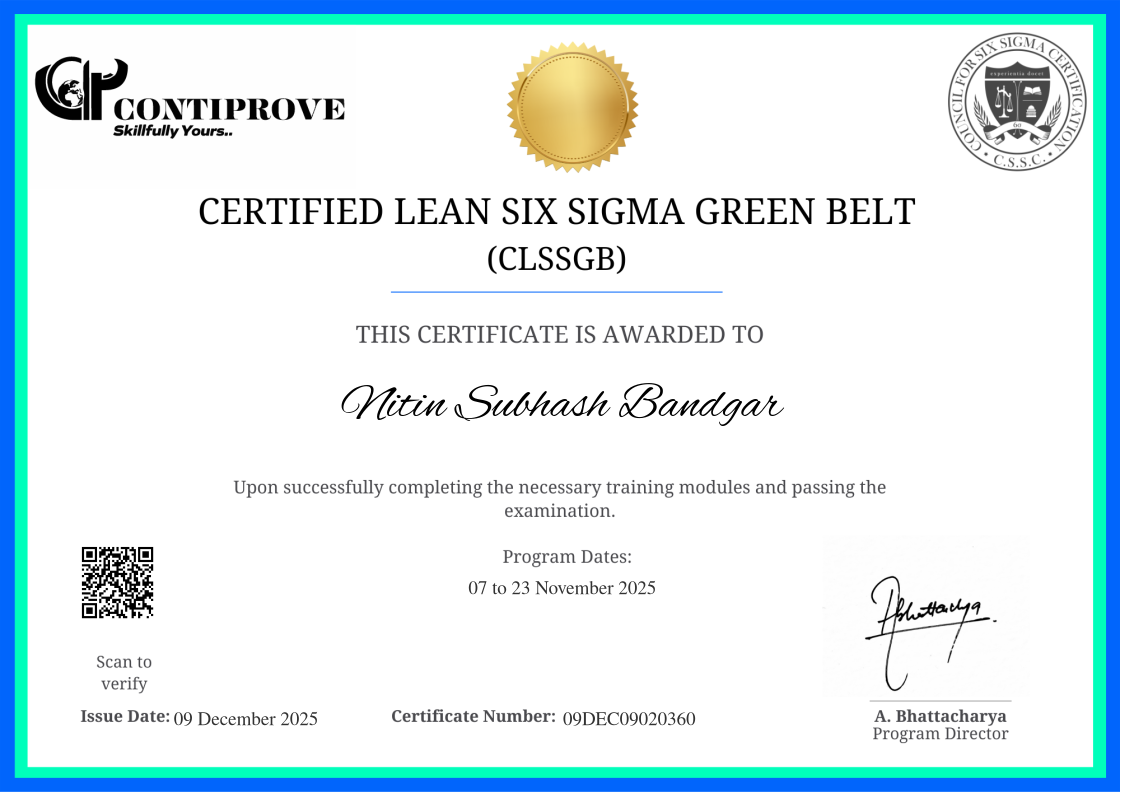 Lean Six Sigma is a highly successful, tried and tested process improvement methodology which is industry/functional area agnostic. Lean Six Sigma Green Belt is the first level of competency in the Lean Six Sigma hierarchy. This program is designed to equip learner with the skills and knowledge necessary to drive process improvement and problem solving in any industry. The course tackles the core concepts, tools and techniques of Lean Six Sigma Green Belt curriculum with hands-on practice on 1 capstone project. Learner will be introduced to the latest trends like Digital Transformation, Industry 4.0, & AI/ML/IIoT within the improvement roadmap of DMAIC (Define, Measure, Analyse, Improve & Control). After undergoing this training, learner will be well-prepared to navigate and lead the process improvement projects in today's technologically thriving business environment.