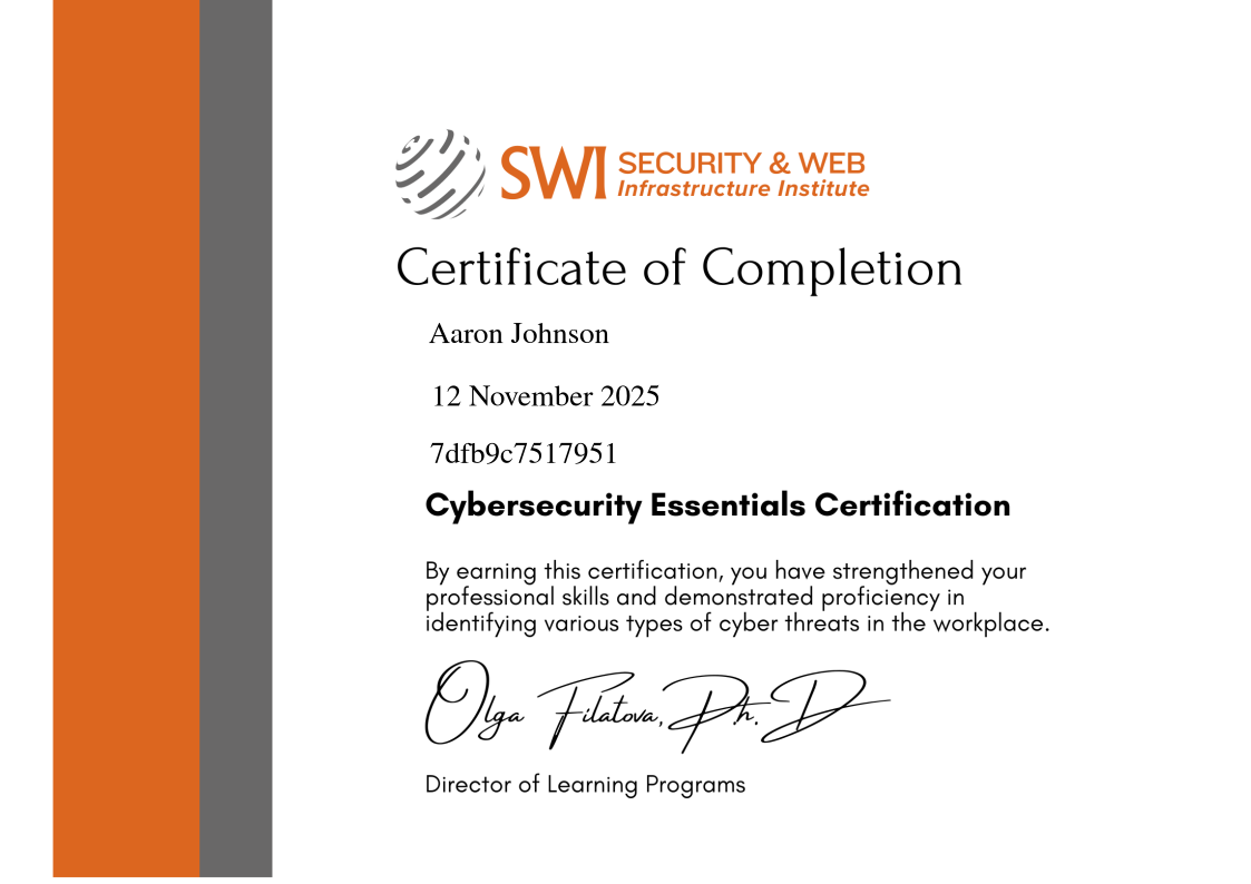 By completing this certificaiton, the participant has shown a strong understanding about the various types of cyber threats, defense mechanisms, and the best practices for protecting information and systems.
