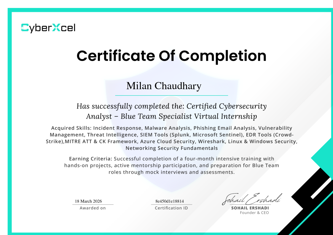 Issued by: CyberXcel Training Academy