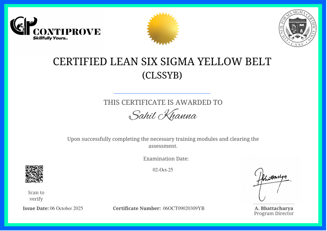 Lean Six Sigma is a proven methodology for driving process excellence, applicable across industries and functions. Lean Six Sigma Yellow Belt serves as the foundational level in the Lean Six Sigma hierarchy. This program is tailored to provide learners with a solid understanding of core concepts, tools, and techniques used in process improvement. With an emphasis on practical knowledge, participants gain insights into identifying inefficiencies, supporting Green Belt and Black Belt projects, and contributing meaningfully to organizational success.