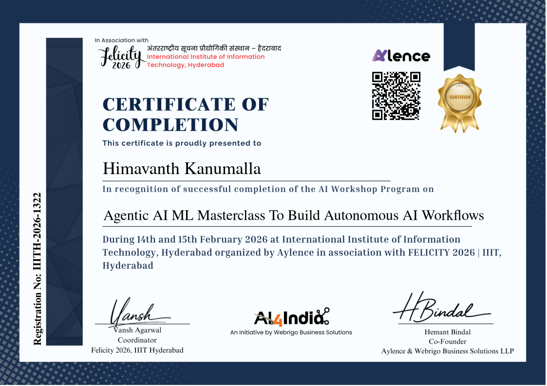 Credential Signatory: Aylence in Association With Felicity 2026, IIIT Hyderabad