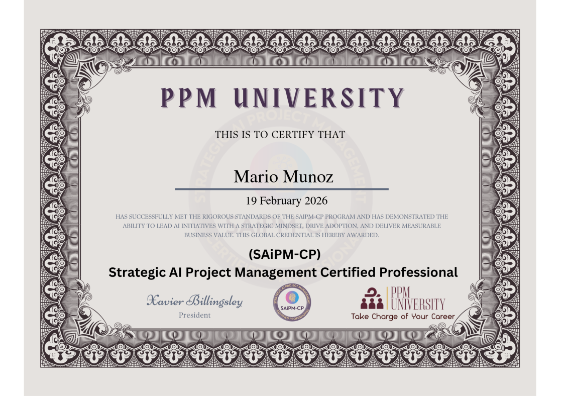 The Strategic AI Project Management - Certified Practitioner (SAiPM-CP) certification validates a project manager's expertise in leading artificial intelligence initiatives from strategic conception through deployment and measurable business outcomes. This industry-recognized credential demonstrates mastery of the ALIGN360-AI framework, a specialized six-phase methodology designed specifically for AI project management.