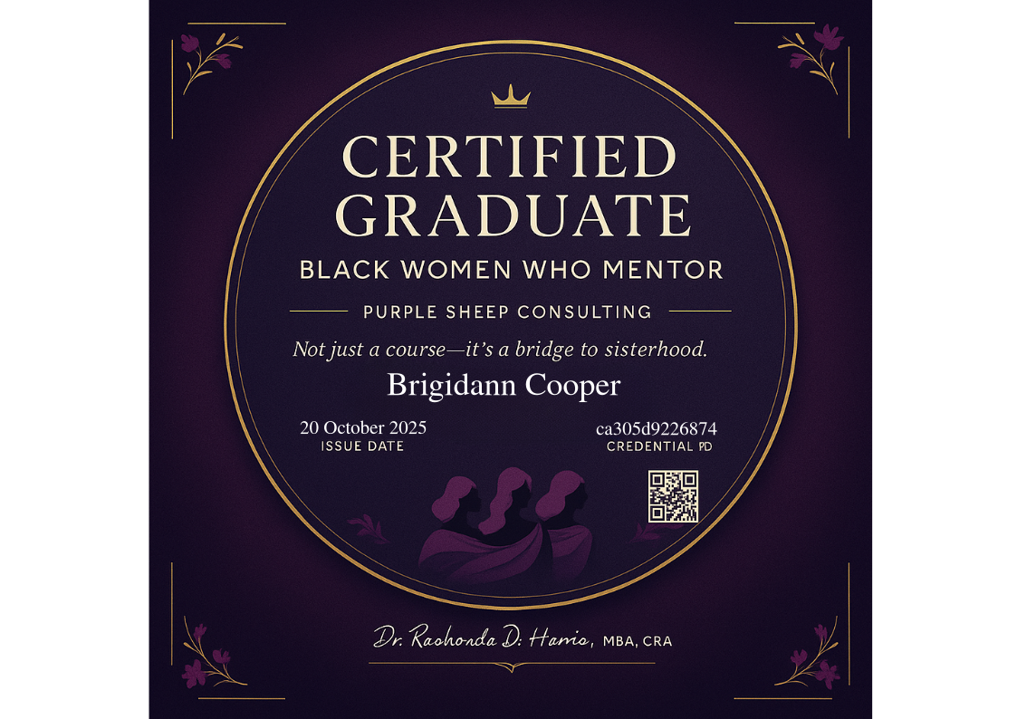 Black Women Who Mentor (BWWM) is a 14-week professional growth experience designed to move mentees from mentorship to sponsorship, building confidence, career strategy, and community. Rooted in the Purple Harvest trilogy and our C.H.A.N.G.E. ethos—Compelling. Hope. And. Nourishing. Generational. Empowerment.—graduates complete strategic exercises, Sister Circles, and a capstone mentorship framework to demonstrate real-world application. Not just a course—it’s a bridge to sisterhood.