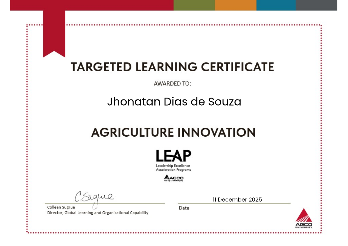 LEAP: Agriculture Innovation is an 8-10 month leadership development program where participants tackle real AGCO business challenges while building leadership skills. Using Design Thinking, diverse teams collaborate on hands-on projects through three phases, blending online learning and practical problem-solving to deliver actionable business solutions.