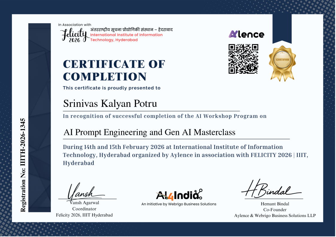 Credential Signatory: Aylence in Association With Felicity 2026, IIIT Hyderabad