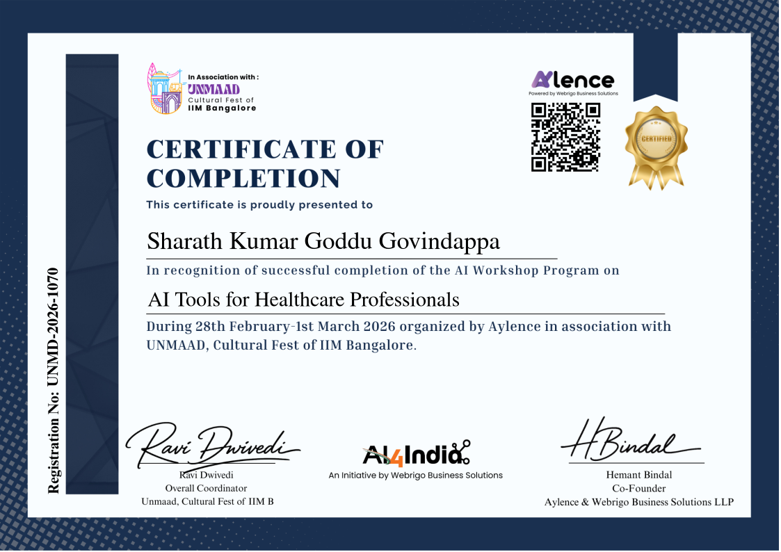 CertifyMe Avatar Sharath Kumar Goddu Govindappa